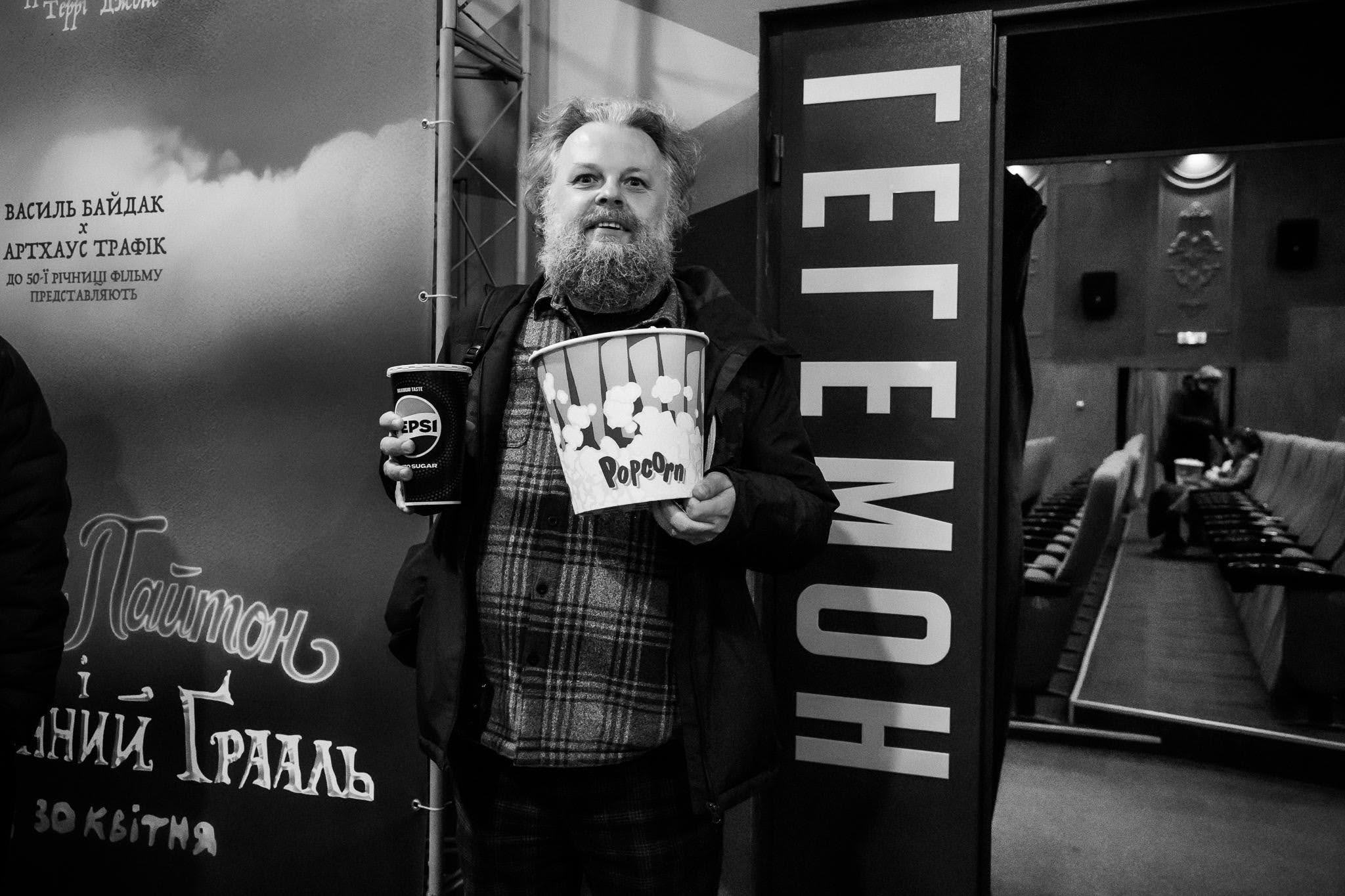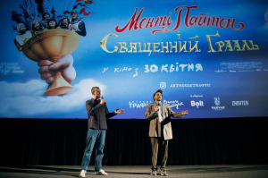 У кінотеатрі «Жовтень» відбувся зірковий показ комедії «Монті Пайтон і Священний Ґрааль», яку продублювали українські коміки та комікеси. В український прокат фільм, який торік відзначив 50-річчя, вийде 30 квітня завдяки Василю Байдаку і компанії «Артхаус Трафік».